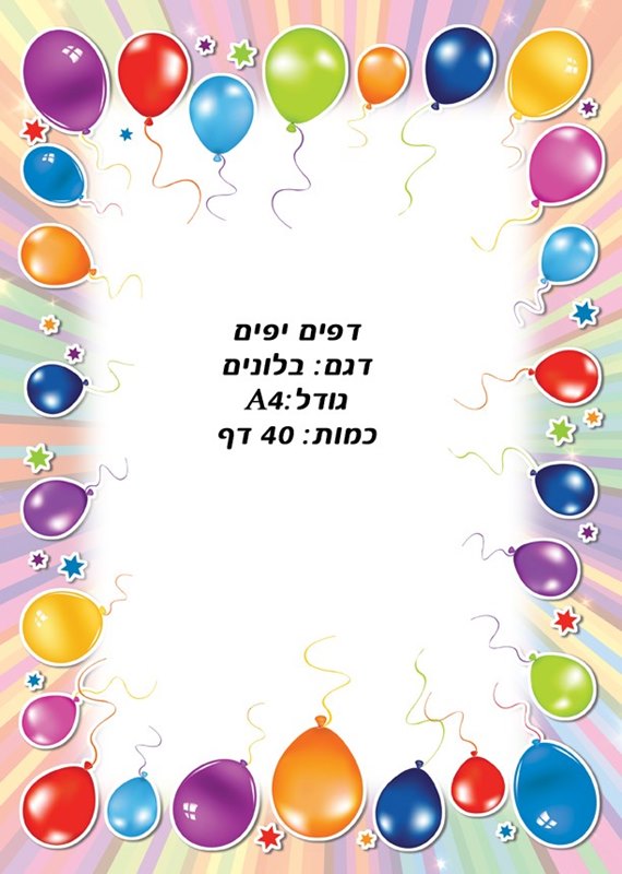מארז 40 דפים יפים -בלונים גודל A4 להדפסה וצביעה