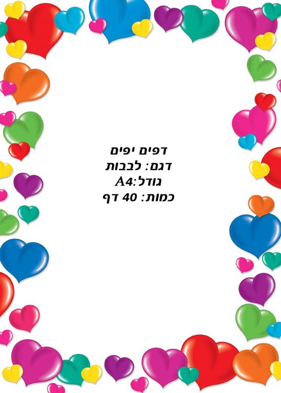 מארז 40 דפים יפים -לבבות גודל A4 להדפסה וצביעה