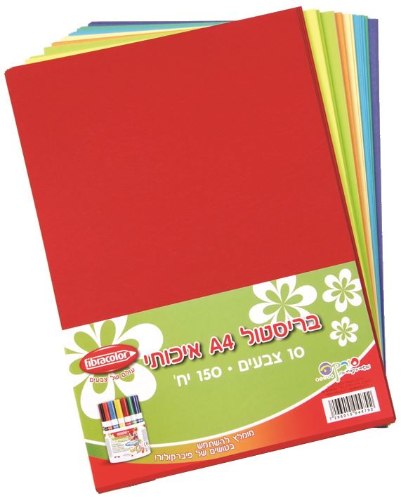 בריסטול A4 צבעוני - 150 יח' 10 צבעים