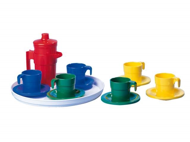 שירות מודרני מעוצב המורכב מ: 6 כוסות עם צלוחית, קפה / קומקום עם מסנן ומגש מגש 1.