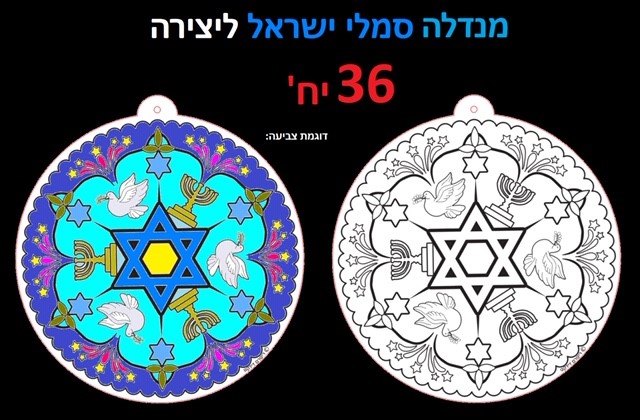 מנדלה סמלי ישראל לצביעה כמות : 36 יחידותמנדלה סמלי ישראל לצביעה כמות : 36 יחידות