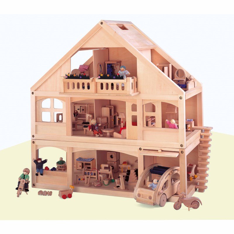 525016בית בובות מעץ ליבנה525016 בית בובות