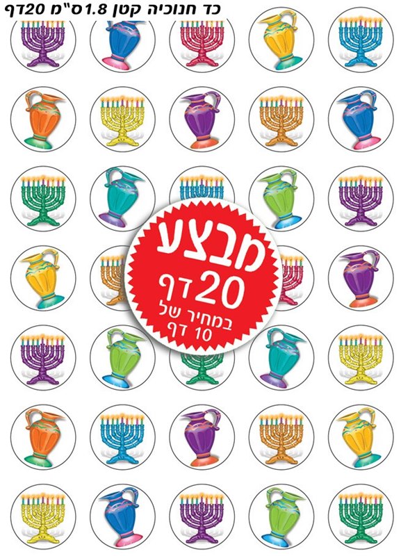 מדבקות עיגול קטנות עם איורים צבעוניים מעורבים של כד וחנוכיה