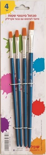 סט מכחול סינטטי - לצבעי אקריליק | ראש שטוח - 4 יח' פלדע