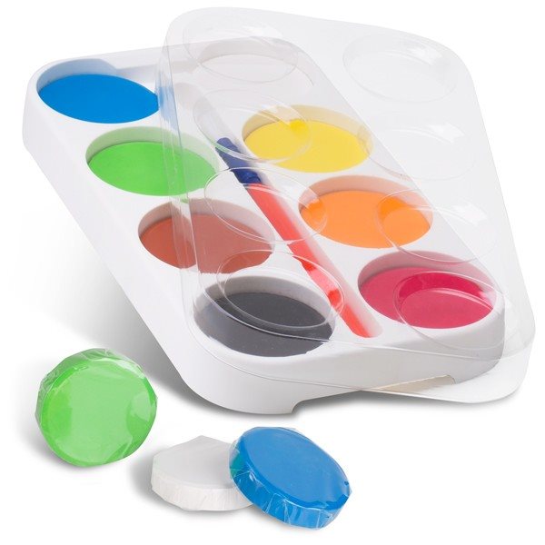 Ø 55 mmWatercolour tablets, thickness 13 mm, plastic box, 8 colours.