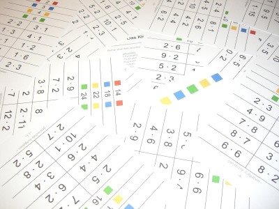 20 כרטיסי אטב , הילדים יכולים לצפות למשימות נושא הקשורות לטבלת הכפל. לדוגמא, ניתן לטפל ספציפית בטבלת כפל ספציפית. מתחילים יכולים גם לעשות את צעדיהם הראשונים בטווח המספרים עד 10. לילדים נהנים מאוד לעשות מתמטיקה בצורה כזו. ישנם 4 פתרונות אפשריים המתבטאים ב -4 צבעי סוגריים שונים. הדבר הטוב ביותר לעשות הוא להזמין את הקליפים המיני צבעוניים ורצועת הרכבה בו זמנית.
