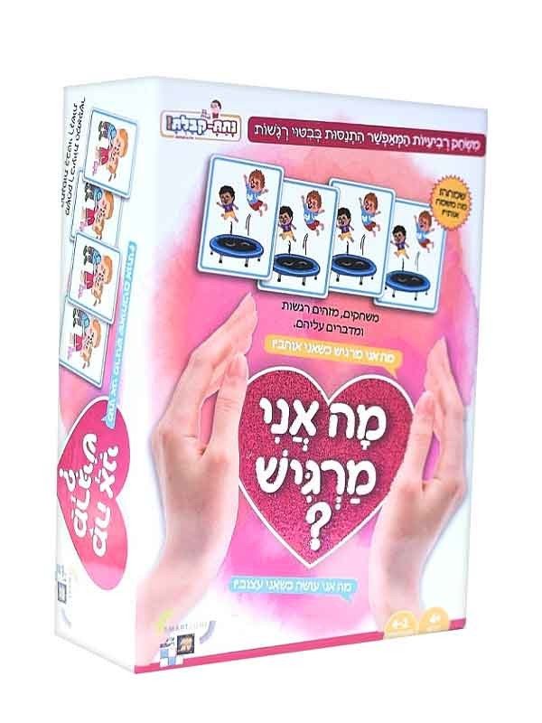 מה אני מרגיש? משחק שמעודד ילדים לבטא רגשות ומבוסס על עקרון משחק הרביעיות. דרך נעימה ללמד את הילדים לבטא רגשות ולהבחין בין רגשות שונים. כגון: עצב, שמחה, אהבה, כעס, עלבון ועוד. איך משחקים? מרכיבים רביעיות על ידי תיאור הרגש והמצב המתואר בקלף. לדוגמא: "יש לך ילדה שנעלבה כי לא שיתפו אותה במשחק?" "יש לך שני חברים שמחים שקופצים על טרמפולינה?" המשחק נוצר על מנת ללמד את הילדים לבטא את רגשותיהם ולדבר עליהם, בדרך של כיף והנאה, לפתח יכולות מילוליות ואת היכולת לשים לב לרגשות הזולת.