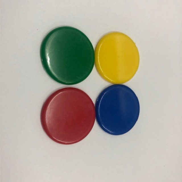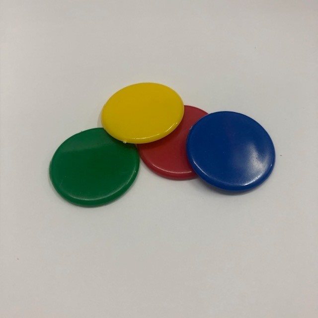 דיסקיות פלסטיק ליצירת משחקים 4 צבעים בסיסים 30 מ"מ כמות : 100 יחידות6309.1