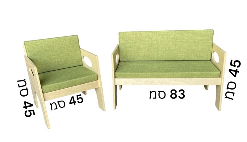 סט סלון מעץ ספה זוגית + יחיד ( הרכבה עצמית )ירוק121522.5122521.9