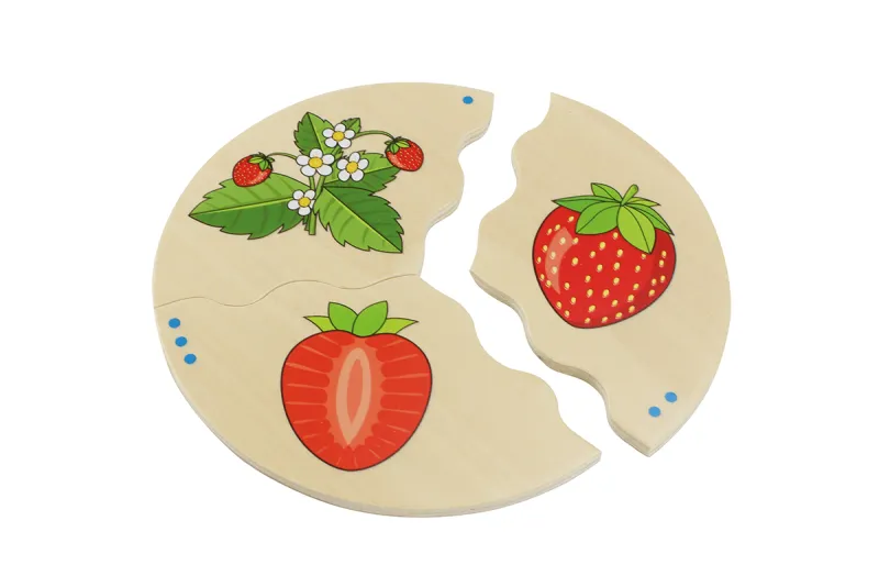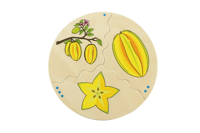 כל פאזל מציג פרי שונה, ומלמד כיצד מתפתח הפרי משלב הצמח עד להפיכתו לפרי בשל המוכן לאכילה. ישנם 10 פאזלים שכל אחד מהם מורכב מ- 3 חלקים מעץ. המשחק מכיל 30 חלקים מעץ.