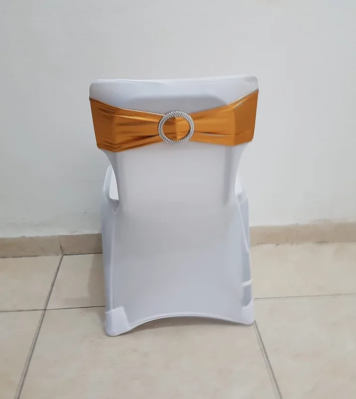 כיסוי לבן לכיסא בד לייקרה + חבק מטאלי